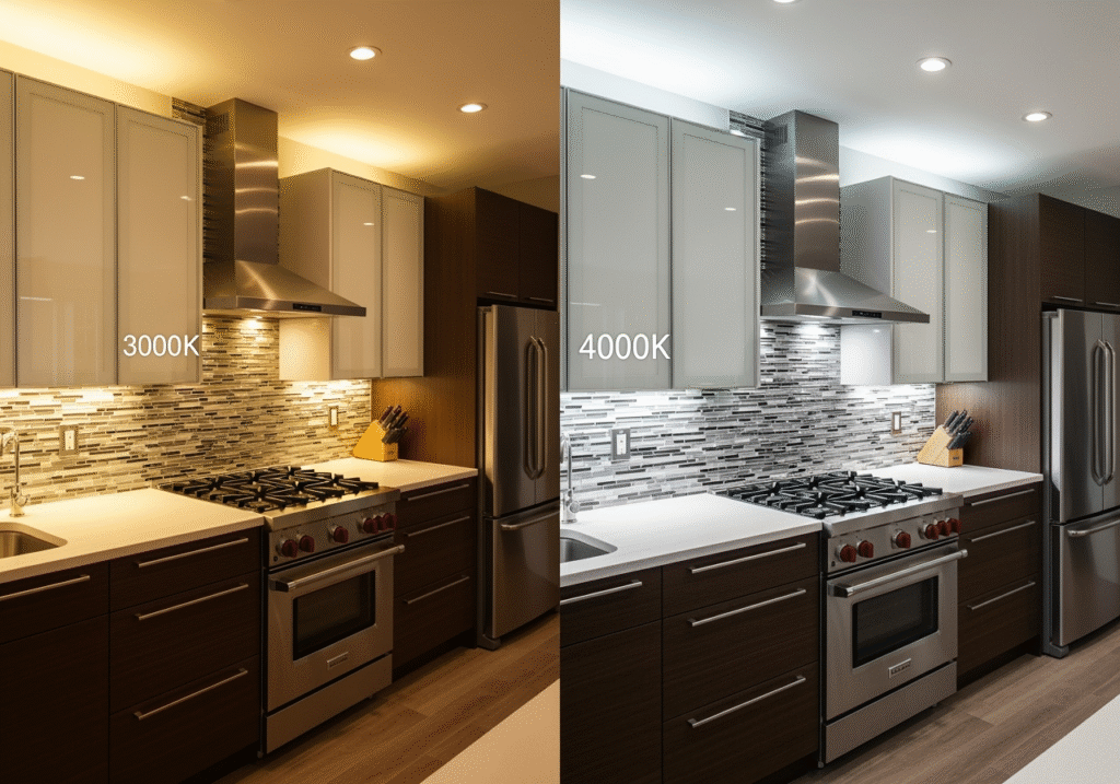 This depends on the desired function and aesthetic. Warm white light (2700K-3000K) is excellent for creating a cozy, inviting ambiance and complements traditional designs or wood cabinets by enhancing their natural tones. Neutral to cool white light (3500K-4000K) provides crisp, clear illumination ideal for task-heavy areas like food preparation and suits modern or contemporary styles. Many luxury systems offer “tunable white” technology, allowing you to adjust the color temperature to suit different moods or tasks throughout the day.