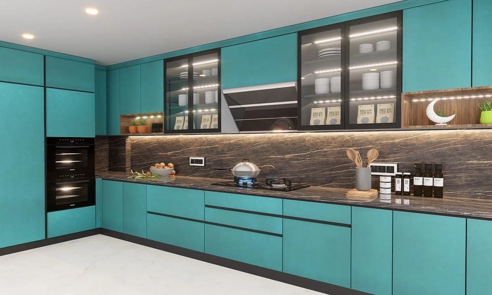 Two-tone laminate combinations are gaining popularity as a way to introduce contrast while maintaining harmony. Lighter shades on overhead cabinets paired with darker base units help balance visual weight and improve spatial perception. This approach allows designers to create depth and interest without disrupting the overall cohesion of the kitchen.